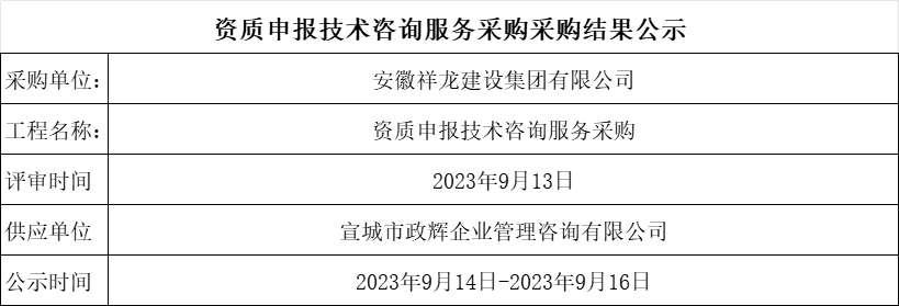 資質申報技術咨詢服務采購采購結果公示