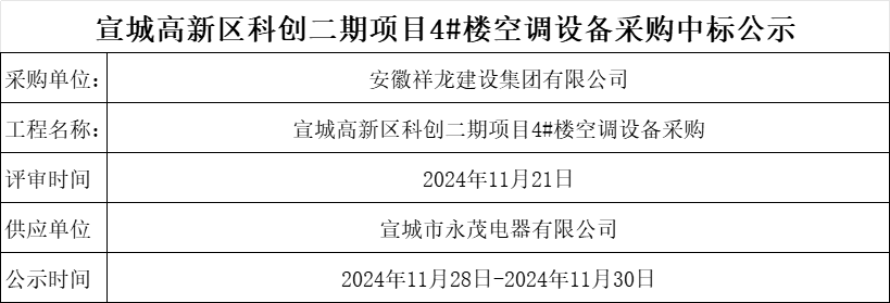 宣城高新區(qū)科創(chuàng)二期項目4#樓空調(diào)設(shè)備采購中標(biāo)公示