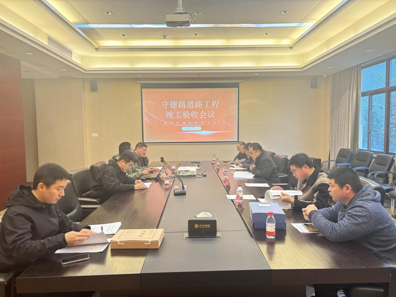 2025年3月28日下午,守德路道路工程竣工驗收會議在安徽祥龍建設集團召開。會議由建設單位主持,施工單位、勘察單位、設計單位、監理單位等相關單位的負責人參加會議,高新區管委會建設局領導全程參與監督驗收工作。各方齊聚一堂,共同對守德路的建設成果進行全面細致的評價。