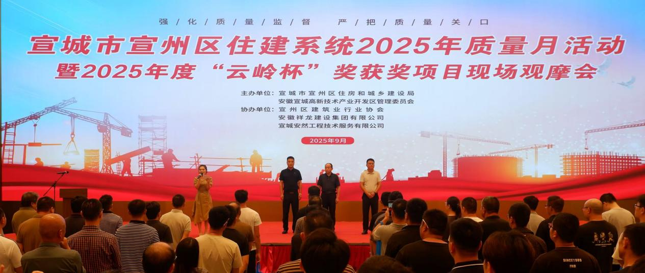 2025年9月26日,由宣城市宣州區(qū)住房和城鄉(xiāng)建設(shè)局、安徽宣城高新技術(shù)產(chǎn)業(yè)開(kāi)發(fā)區(qū)管理委員會(huì)聯(lián)合主辦的“宣州區(qū)住建系統(tǒng)2025年質(zhì)量月活動(dòng)暨2025年度‘云嶺杯’獎(jiǎng)獲獎(jiǎng)項(xiàng)目現(xiàn)場(chǎng)觀摩會(huì)”在宣城高新技術(shù)產(chǎn)業(yè)開(kāi)發(fā)區(qū)科技創(chuàng)新中心一期項(xiàng)目圓滿(mǎn)落幕。活動(dòng)旨在以“質(zhì)量月”為契機(jī),通過(guò)“標(biāo)桿引領(lǐng)、經(jīng)驗(yàn)共享”模式,推動(dòng)全區(qū)建筑業(yè)質(zhì)量管控水平整體提升,助力“品質(zhì)好房子 匠心安徽造”品牌建設(shè)。